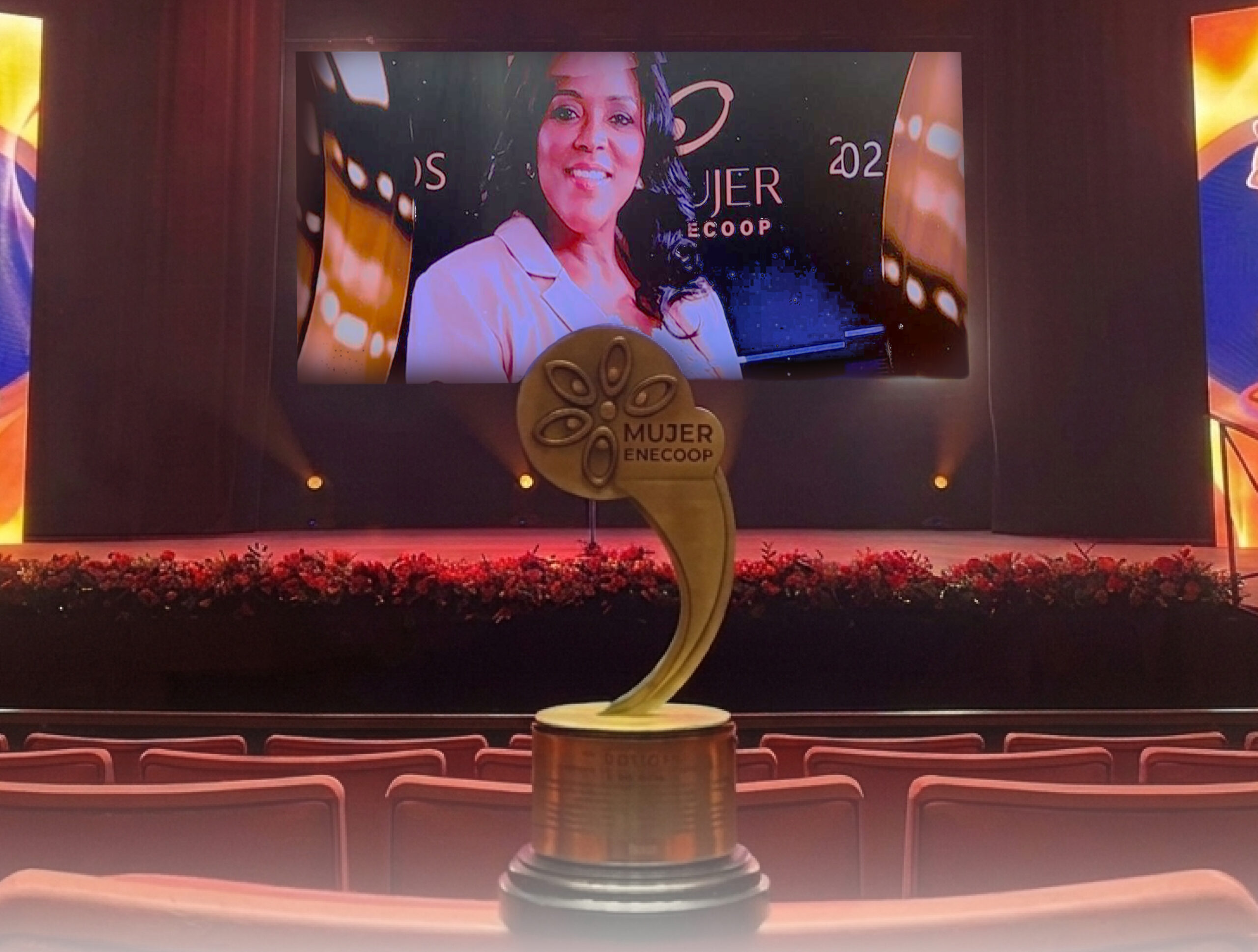 La Escuela Nacional de Educación Cooperativista (ENECOOP) reconoció a la Lic. María Eugenia Acosta, Gerente General de la Cooperativa Vega Real, con el premio Mujer ENECOOP en la categoría Mérito a la Trayectoria, en ceremonia celebrada en la Sala Carlos Piantini del Teatro Nacional Eduardo Brito, en Santo Domingo.